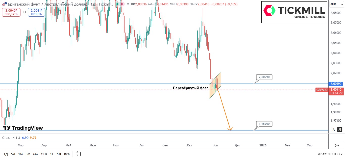 Кросс-курс GBP/AUD консолидируется под пробитой горизонталью 2.0099, формируя серию небольших доджи.